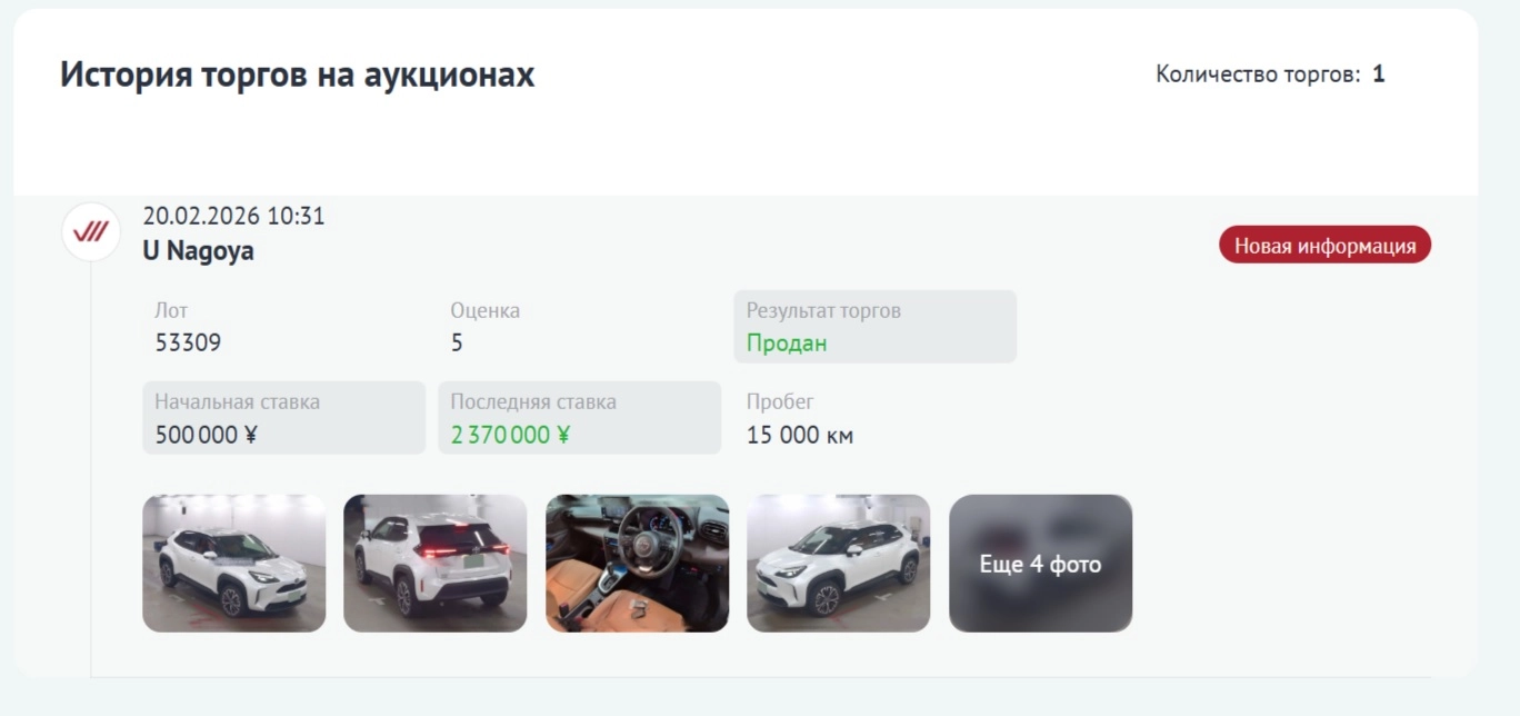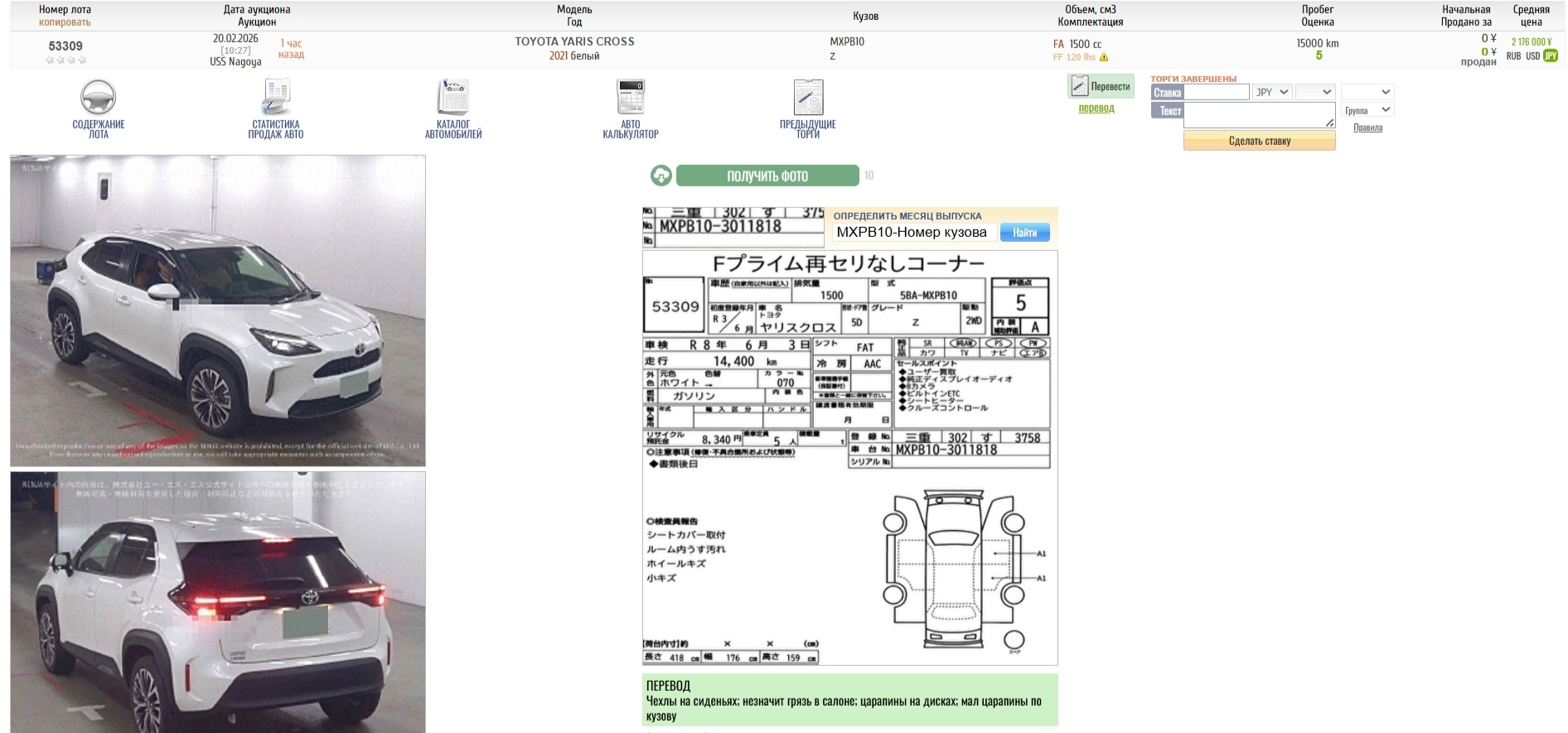 Цена автомобиля на аукционе 2 370 000 ¥ ( 1 245 909 ₽)