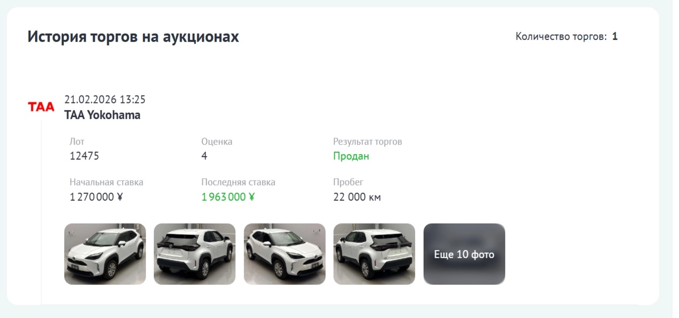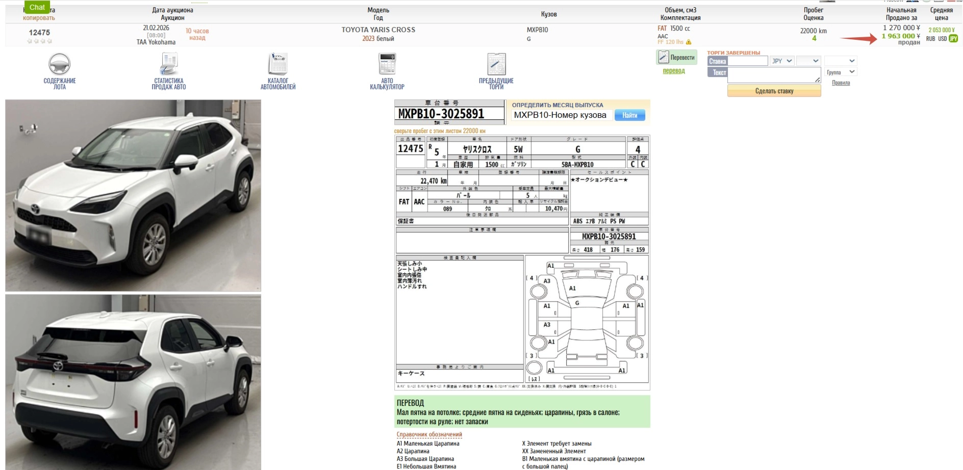 Цена автомобиля на аукционе 1 963 000 ¥ ( 1 031 949 ₽)